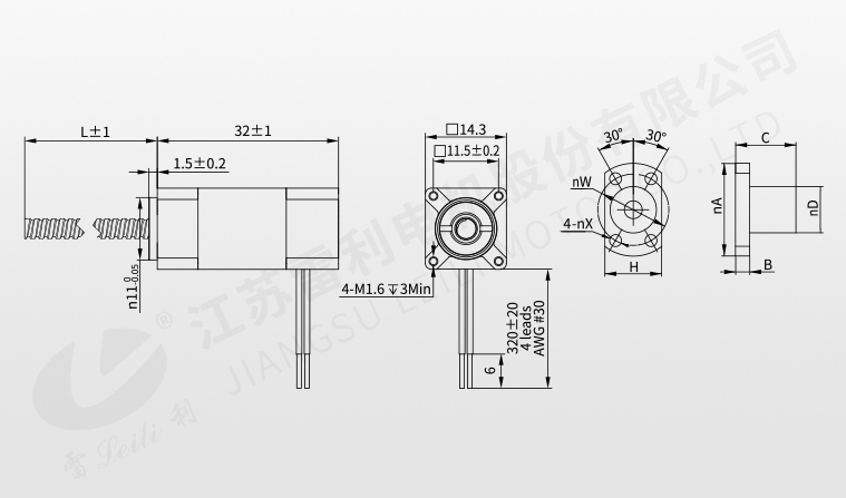 滚珠丝杆线性执行器有6种外形尺寸,14mm, 20mm, 28mm, 35mm, 42mm, 57mm,均为外部驱动式。从0.005mm/步到0.1mm/步,有多种步长可选。