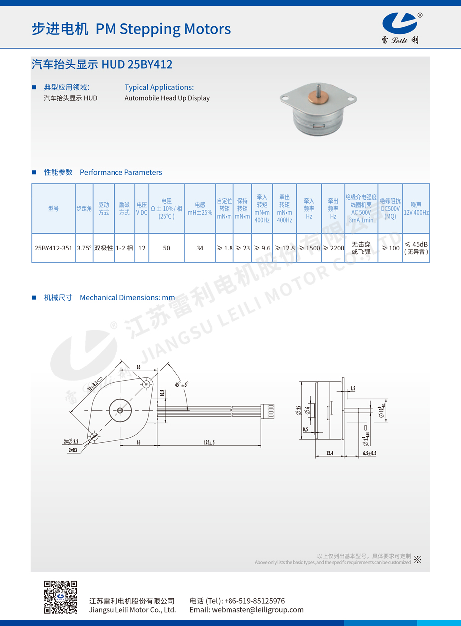 | 25BY412-351 | 3.75° | 双极性 | 1-2 相 | 12 | 50 | 34 | ≥ 1.8 | ≥ 23 | ≥ 9.6 | ≥ 12.8 | ≥ 1500 | ≥ 2200 | 无击穿 或飞弧 |