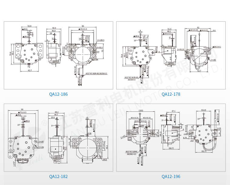 | QA12 | AC220~240 | ≤ 176 | 50/60 | ≤ 30 | ≤ 6 | ≥ 100 | AC1500 1min, 0.5mA |