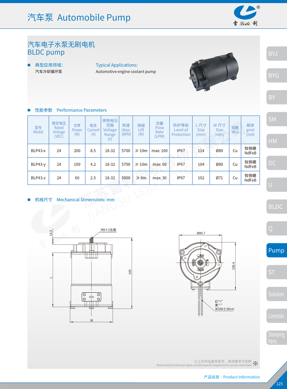 | BLP43-z | 24 | 60 | 2.5 | 18-32 | 5000 | ≥ 8m | max: 30 | IP67 | 102 | Ø71 | Cu | 钕铁硼 |
