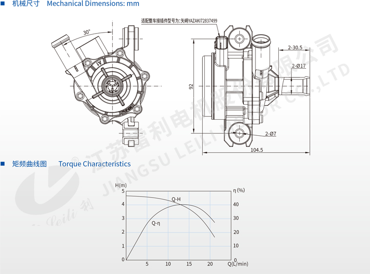 | BLP93-3 | 30W | Q=10L/min 时,H ≥ 4m | Ø17mm | 12V |