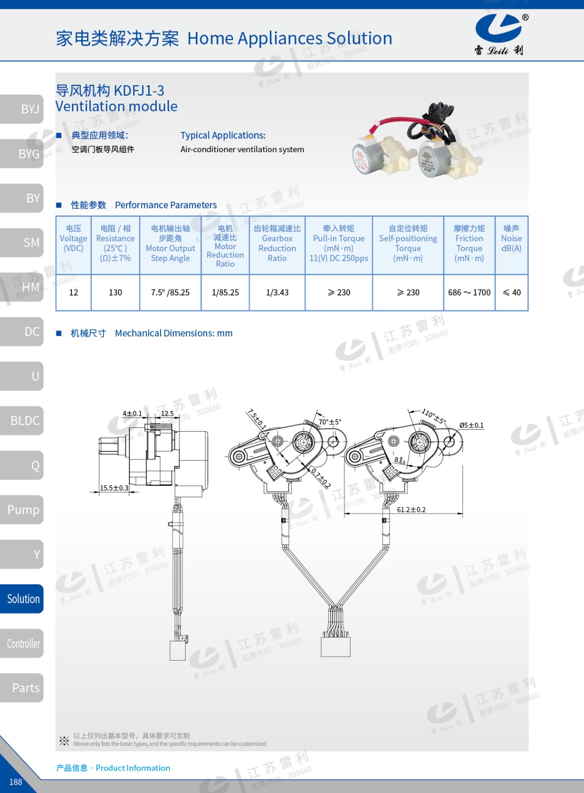 | 12 | 130 | 7.5° /85.25 | 1/85.25 | 1/3.43 | ≥ 230 | ≥ 230 | 686 ~ 1700 | ≤ 40 |