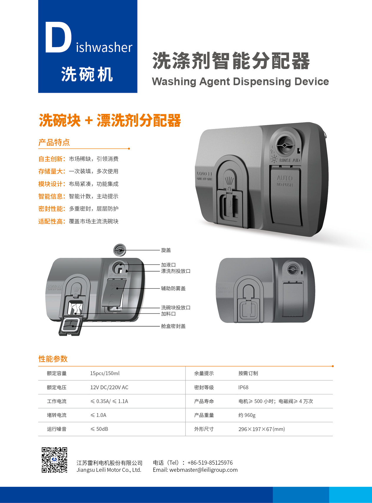 可同时添加洗碗块和漂洗剂