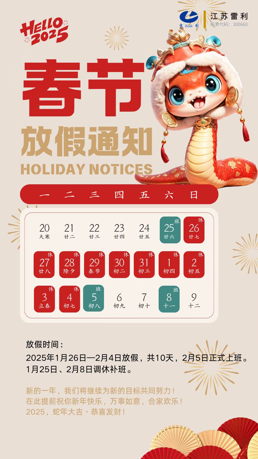 春节放假通知