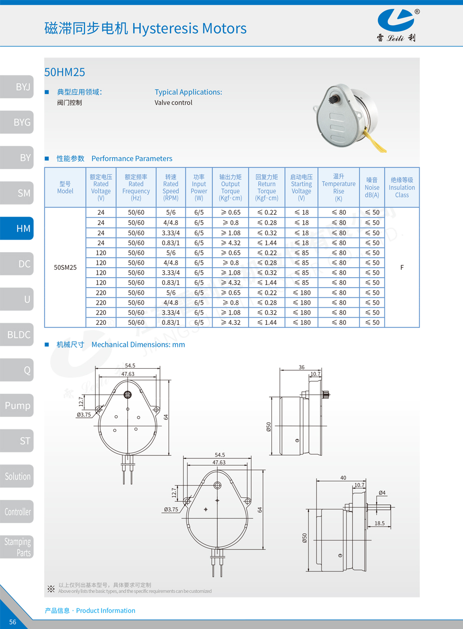 型号:50HM25 磁滞同步电机是利用转子上产生的磁滞转矩起动和运行的小功率同步电动机。磁滞电动机具有结构简单、启动方便、噪音小等优点,