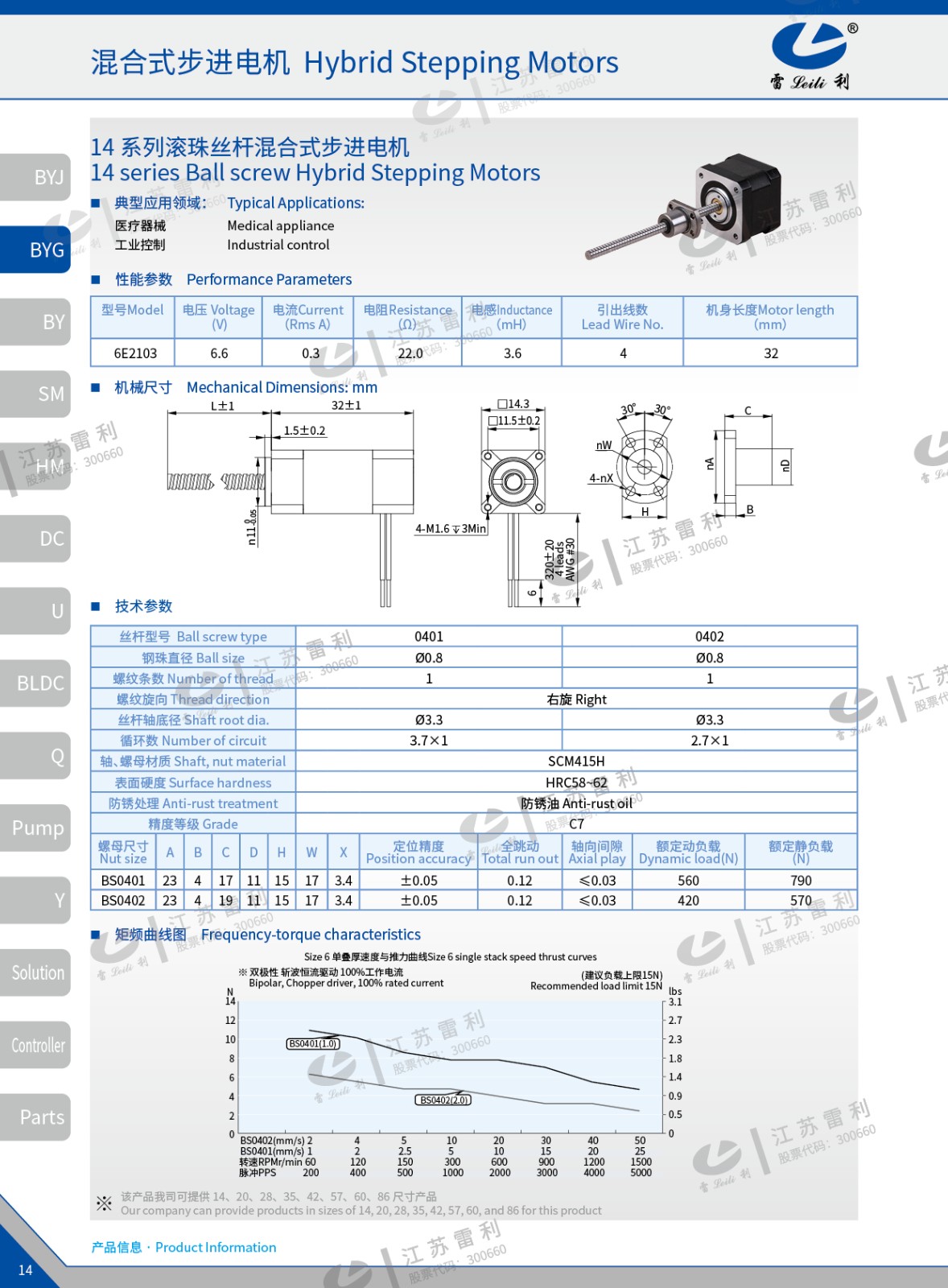 14 系列滚珠丝杆混合式步进电机