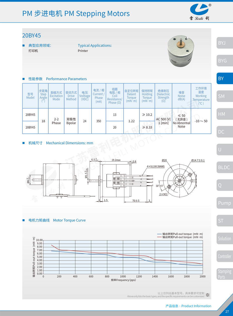 haha体育PM步进电机的转子使用永磁材料,通过转子和定子之间同性相斥异性相吸原理不断进行运转,一般为内转子型电机,圆柱形转子的外表面均匀分布着N、S极(外表面无齿)。PM步进电机一般为两相,扭矩和体积小。