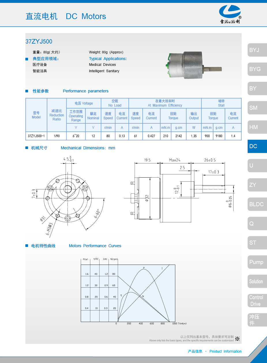 直流有刷电机37ZYJ500