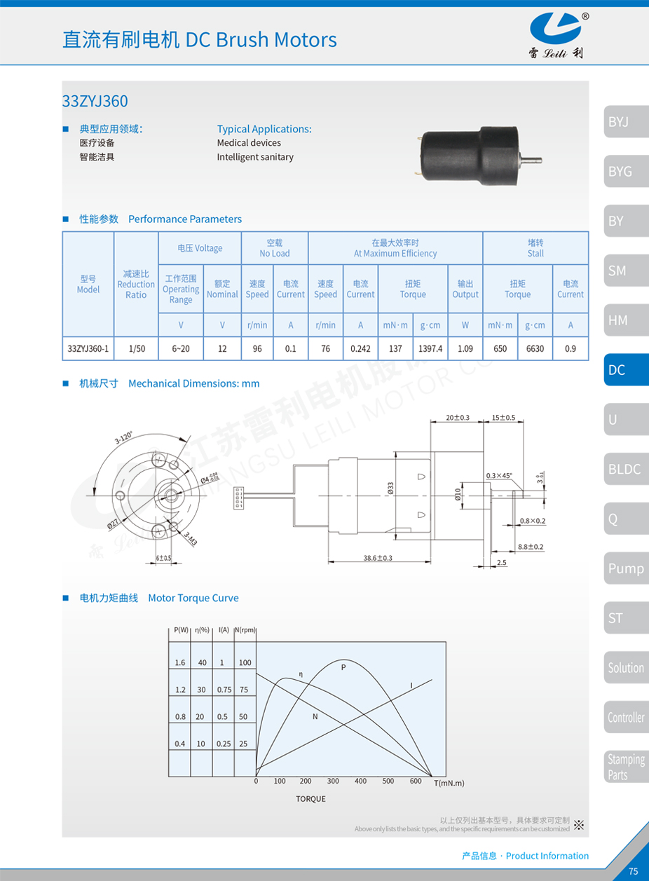直流有刷电机 33ZYJ360