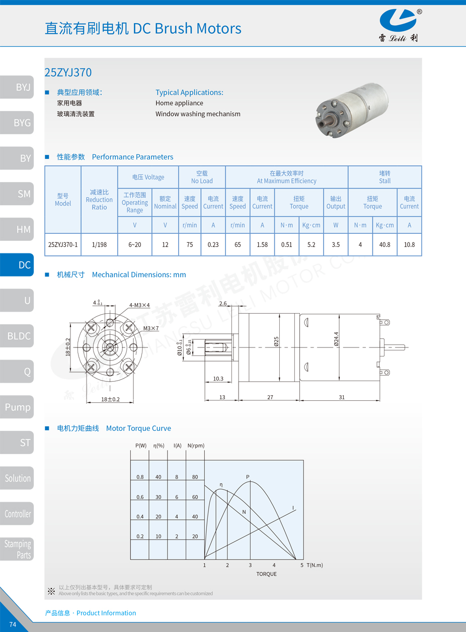 直流有刷电机 25ZYJ370