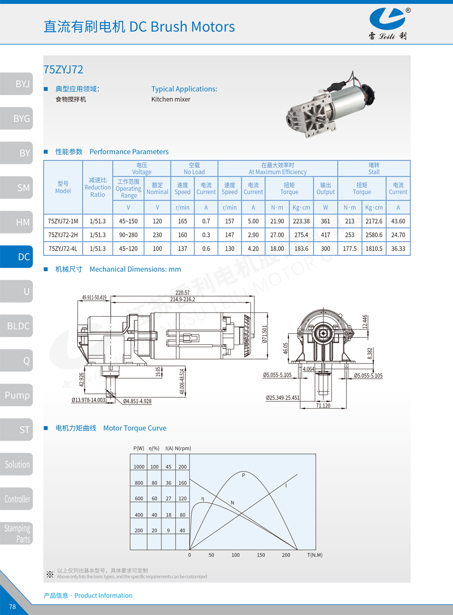 直流有刷电机 75ZYJ72
