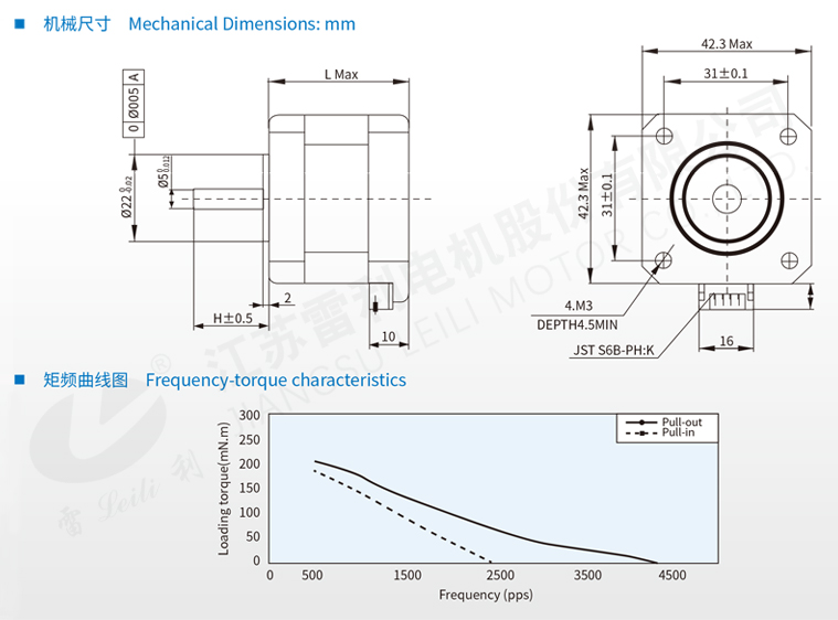 | 42BYGH22-3 | 1.8 | 87 | 0.87 | 3.3 | 5 | ≥235 | ≥190 | 2500 | 6000 | 0.3 | 40 |