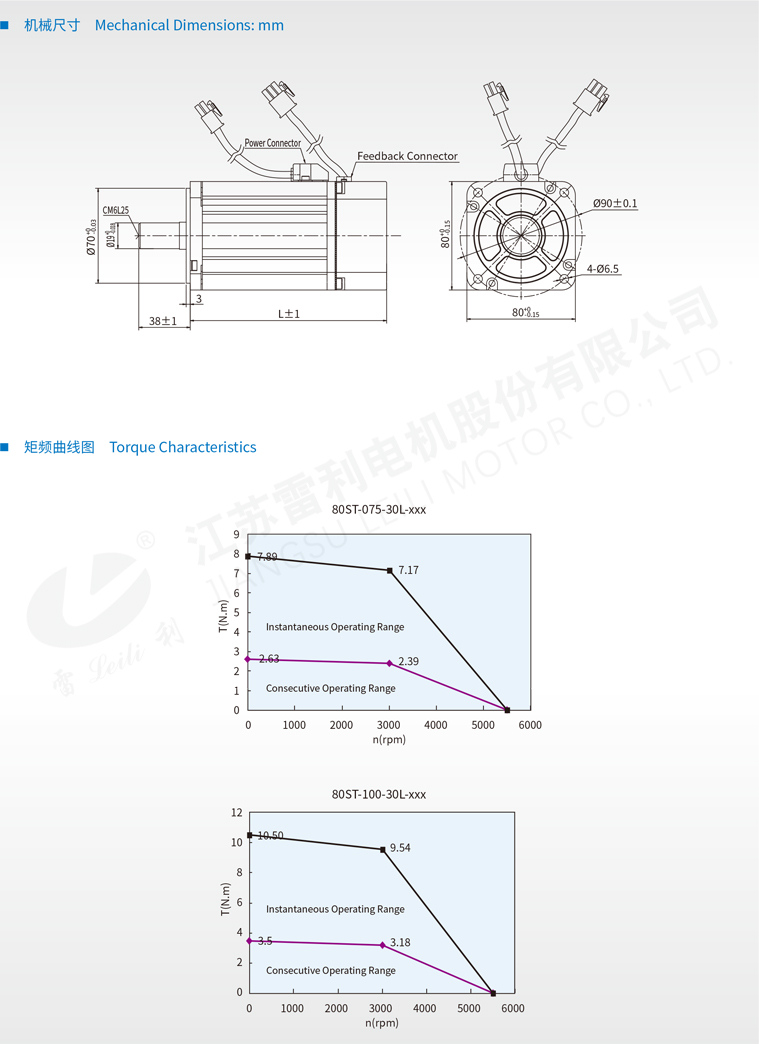 | 伺服电动机型号 | 80ST-075-30L-XX | 80ST-100-30L-XX | ||||||||||||||