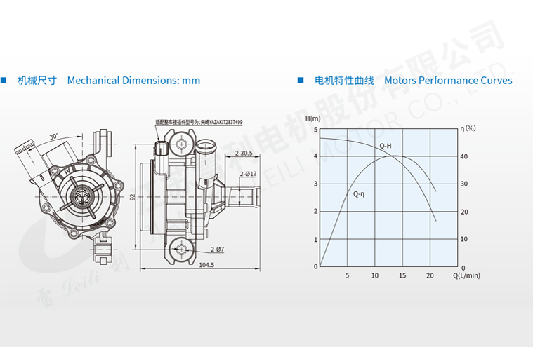 | BLP93-3 | 30W | Q=10L/min 时,H ≥ 4m | Ø17mm | 12V |