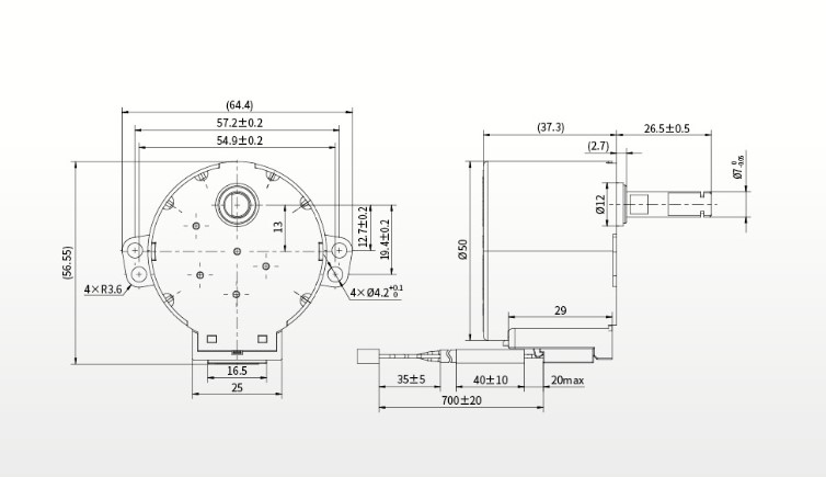 | 50BYJ46 | 12 | 50 | 200 | ≥196 | ≥260 | ≥320 | ≥350 | ≤60 | ≤40 | 7.5°/33.3 | E |