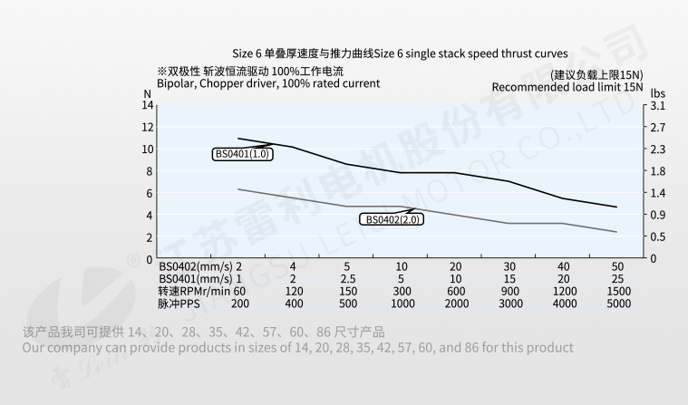 滚珠丝杆线性执行器有6种外形尺寸,14mm, 20mm, 28mm, 35mm, 42mm, 57mm,均为外部驱动式。从0.005mm/步到0.1mm/步,有多种步长可选。