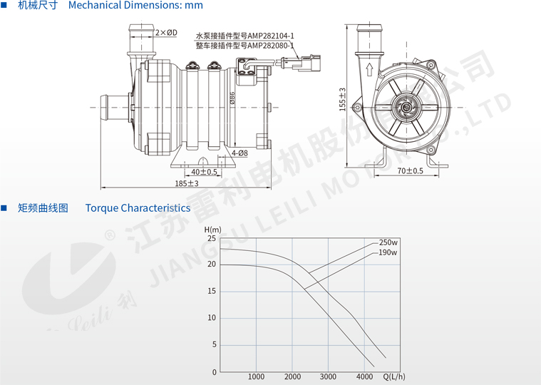 | 190W | Q=2400L/h 时 , H=15m | Ø38mm/Ø25mm |