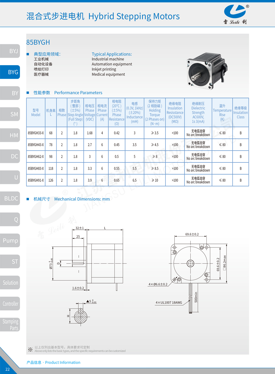 混合式步进电机 85BYGH