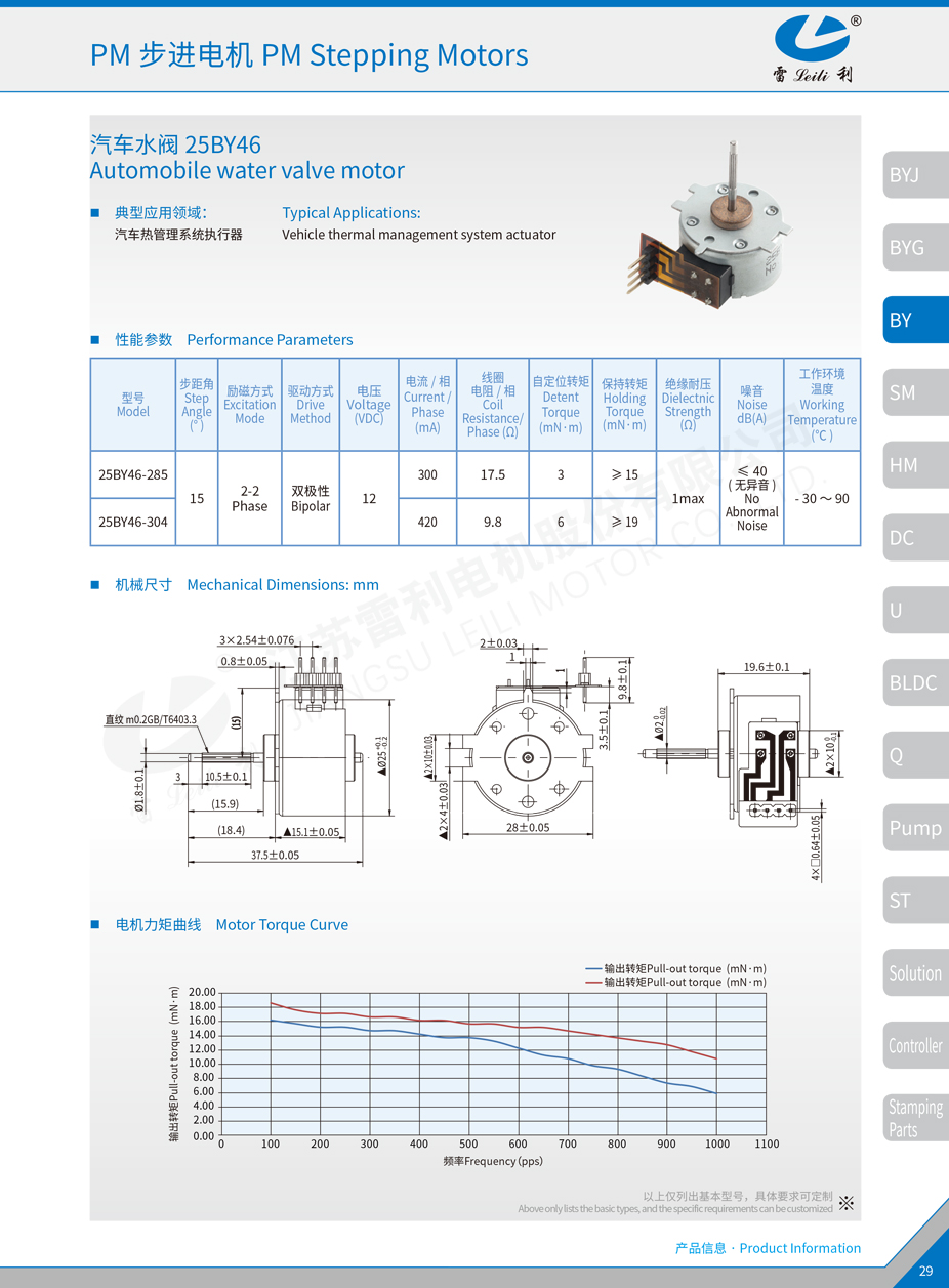 haha体育永磁式步进电机(BYJ系列步进电机)的转子用永磁材料制成,转子的极数与定子的极数相同。其特点是动态性能好、输出力矩大。