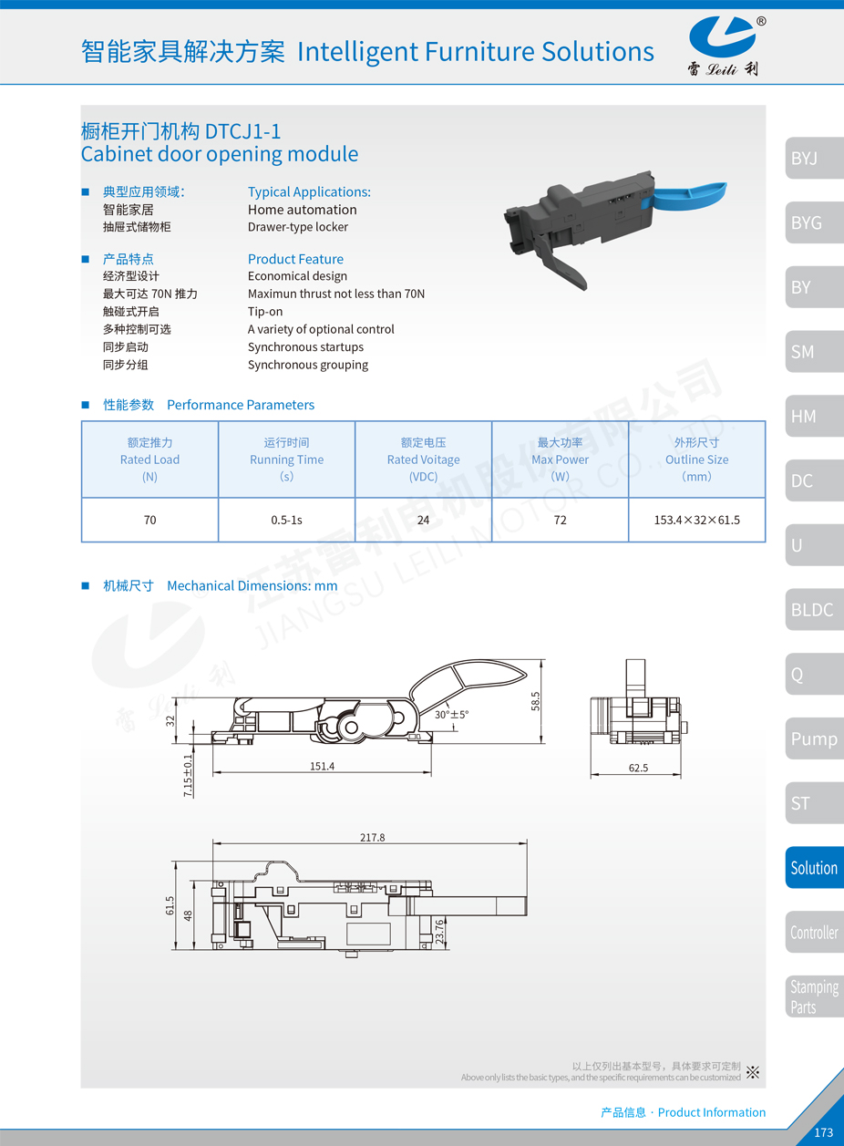 智能家具解决方案 家居开门机构 DTCJ1-1
