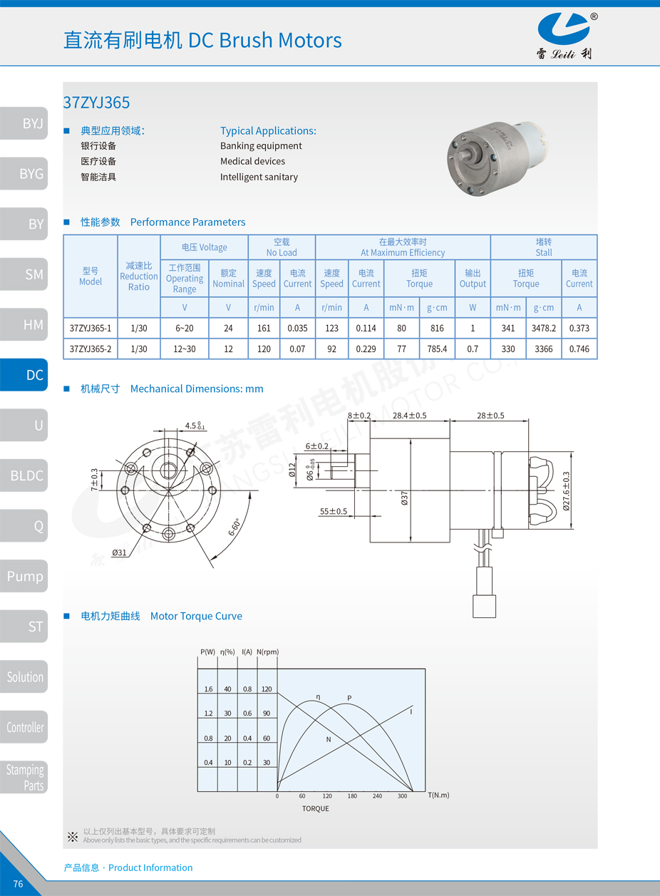 直流有刷电机 37ZYJ365